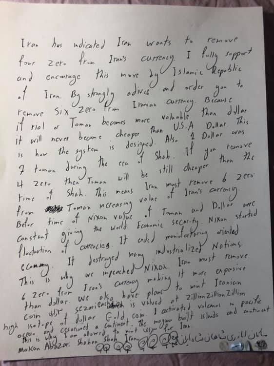 We are industrializing at Max Efficiency and at Max Capacity according today standards. It is not like the past when we built Soviet and USA within one year the same way we built Empire State building in Manhattan in one month. It is very fast rate of industrialization in Iran but slower since we are doing it according current standards and obeying local security mechanisms. This means Iran’s economy will become most significant next to China and USA. Iran shall become third major Economy within 5 years. Now we must ensure value of Iranian Currency is very high and constant. Iranian currency must also become world trade currency. Meaning, USA must lift the sanctions on Iranian Banks and on Iranian Currency allowing it to be traded in global exchange systems. It is also very important in process of making Iranian currency a world trade currency. Because Iran is a major Oil producing Nation and Iran wishes to trade its oil in its local currency or exchange local currency to get foreign reserves without difficulty. It is also important for my personal security in Iran when I need to transfer money from USA to Iran. Iranian Toman must become world trade currency meaning South America, Russia, China, and Europe must trade using Iranian Toman when trading with each others and with other actors. Meaning, Europe must trade with South America using Iranian Toman. Because it is story of Thou and Me. You and Me, Toman and then it became Two men. Then we had Dollar Do is also Two Rial. Now we have You and You the story of Euro and Yuan. We also have Man o Man Faghat Man. ME and ME only Me. Money or Makan. But we have Also Story Abazari and 3zari A is 1 B is 2 and Zari is 3Zari. The new Iranian Currency valued each at zillion zillion zillion High Isotope of Dollar Gold Coins.
