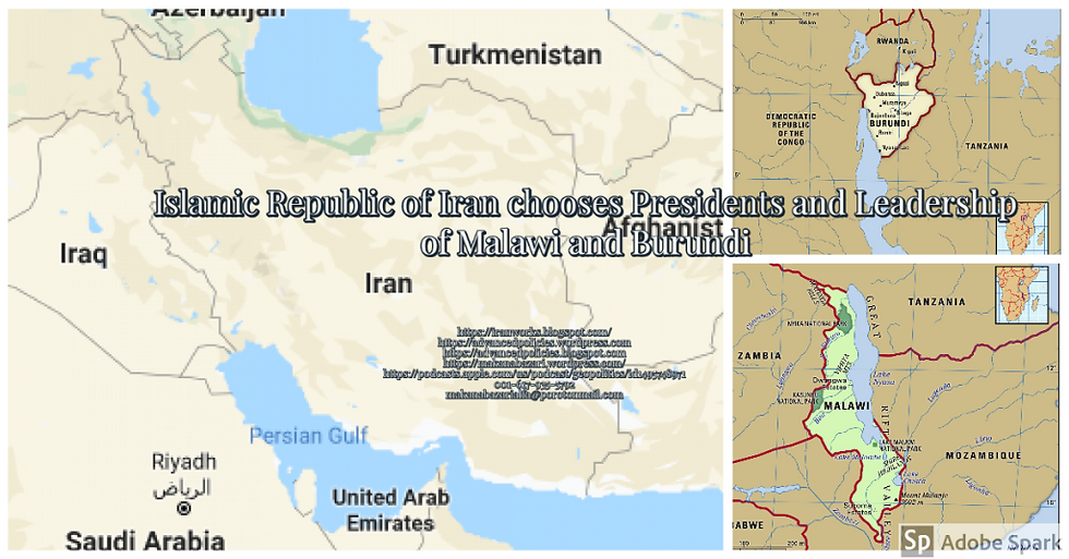 New leader and president of Burundi is appointed by Islamic Republic of Iran. Islamic Republic of Iran shall directly elect leader of Burundi continuously for ten thousand years. #Burundi Burundi is colony of Iran and territory of Iran.Makan Abazari Shahan Shah Iran,Malawi election outcome shall be decided by Islamic Republic of Iran. Islamic Republic of Iran shall choose Malawi leadership and presidents continuously for ten thousand years. Malawi is not colony and territory of Iran.