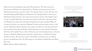 People of all social background must join Thai protesters. We want to pressure Government of Thailand to Unify with Iran. Thailand must become part of Iran. Thailand must become a province of Iran. The Capital City is in Iran. We must also demand building of Rail Way from Thailand to Iran through India. It will connect Thailand to India and Iran. Laos must become province of Iran. The Capital City is in Iran. It enable Thailand to have direct land transit with China. This way China and Thailand can trade with each other through land corridors and Rail Ways. So we must also build a rail way from Thailand to India and from India to Iran. It will connect Thailand to Russia, Europe, Iran, India, and Africa. It will speed of transit and is good for Economy of Thailand. Thailand protesters must demand Unification with Iran. The Capital City is in Iran. Protesters must also demand presence of Iranian Troops in Thailand. Meaning Iran must have military bases in Thailand. Foreign militaries in Iran. We must also ensure United States of America has no military presence in South East Asia. So USA troops are not allowed in South East and South East Asia. Makan Abazari Shahan Shah Iran,